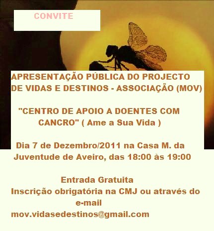 O MOV divulga públicamente no próximo dia 7 de Dezembro, na Casa Municipal da Juventude, às 18:00, mais um dos seus Projectos, dedicado aos doentes com Cancro, aos seus familiares e amigos.